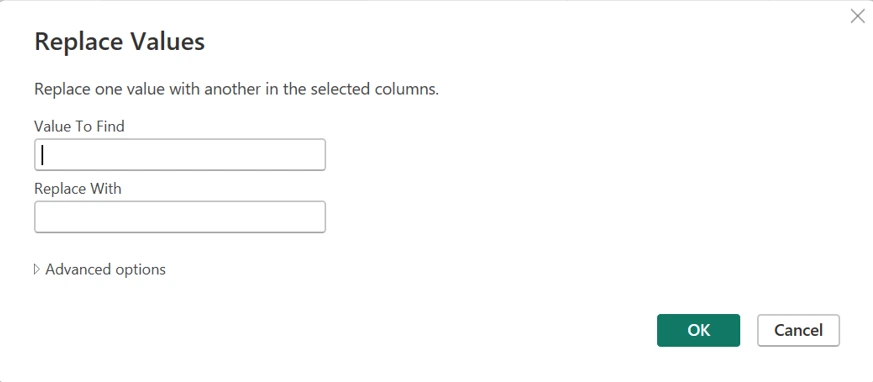 Remove duplicates and replace values: Right click the column header and then select Remove duplicates to remove duplicate values within the column. To replace values in the column, select the column header and click on Replace values. Replace values dialogue box will appear, and you will be prompted to specify the Values to find and the Values to replace.